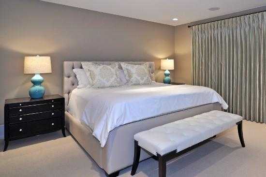 Бежевый является прекрасным цветом для спальни, он успокаивает и гармонично сочетаются с любыми цветами цветового спектра. При этом, он выглядит мягче белого или серого, что позволяет сделать спальню уютнее.