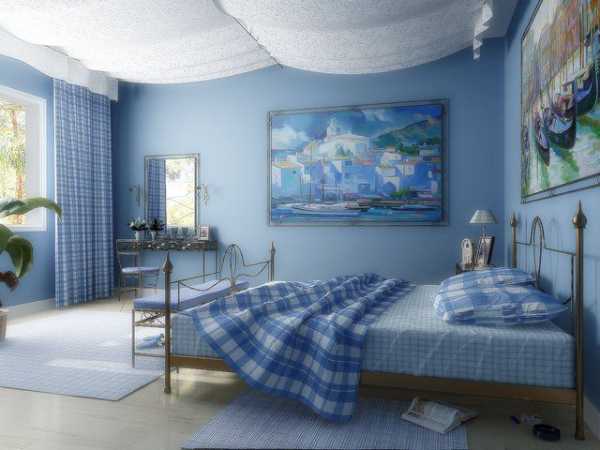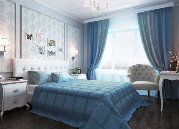 Синий, голубой и бирюзовый цвет в интерьере спальни. Более 30 фотографий