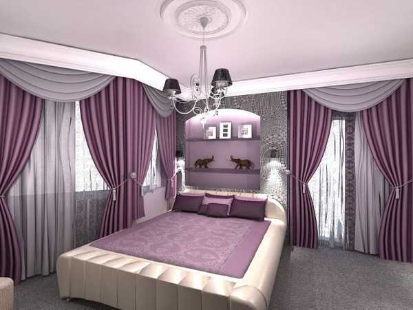 Дизайн спальни в сиреневом цвете понравится утонченным и романтическим натурам. В хорошо освещенной комнате приемлемы более насыщенные вариации фиолетового. Для помещения на северной стороне лучше выбрать теплую приглушенную сиреневую гамму. Фиолетовый идеально комбинируется с белым цветом, хорошо гармонирует с серым и черным. Синий или красный можно включить в интерьер в виде небольших фрагментов.