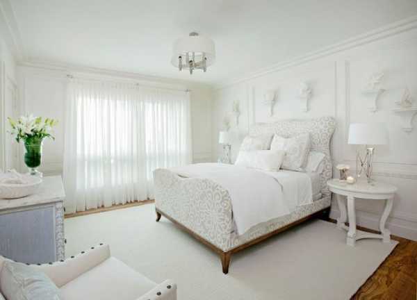 Белый цвет спальни поможет развеять всякие сомнения, сделать жизнь супругов чистой и светлой, собственно, как и сам цвет.