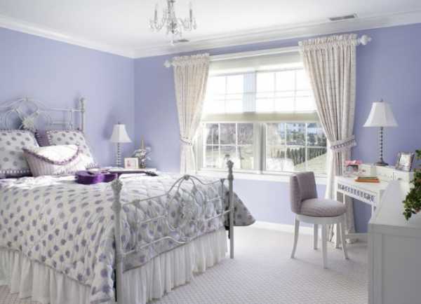 В спальной комнате лучше не использовать яркие цвета, вместо фиолетового, возьмите нежный сиреневый, небесный, розовый, светло-зеленый. Их можно комбинировать между собой, но помните, что всего в интерьере должно быть не более трех основных цветов.