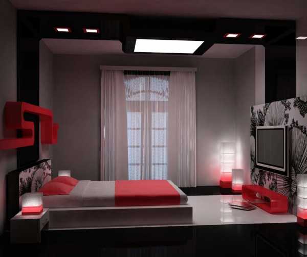 Создать романтическую атмосферу в спальне поможет сочетание красного и черного цветов