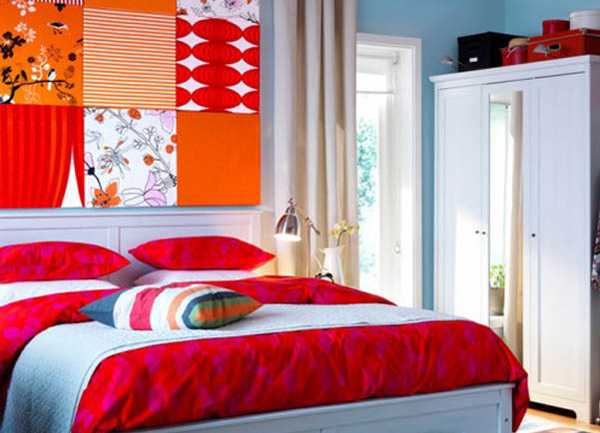 Украсить спальную комнату можно при помощи ярких элементов декора