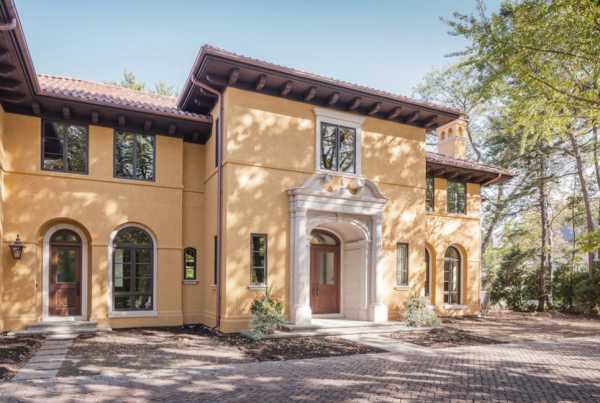Для дома в классическом дизайне оптимальным решением будет профиль цвета темного шоколада. Яркий цвет фасада хорошо уравновешивается окнами в мягких, акварельных тонах. Рамы под дерево – давно проверенный и хорошо зарекомендовавший себя вариант. Цветной профиль в лучах яркого солнца нагревается сильнее, чем белый, поэтому требует усиления конструкции.