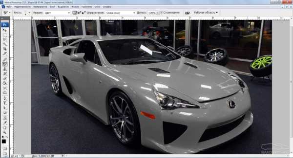 убираем лишние части, такие как фары, воздухозаборники и т.д., т.е. те которые не нужно красить.для этого берем инструмент «прямолинейное лассо», зажимаем кнопку Alt(появится маленький минус) и выделяем фару