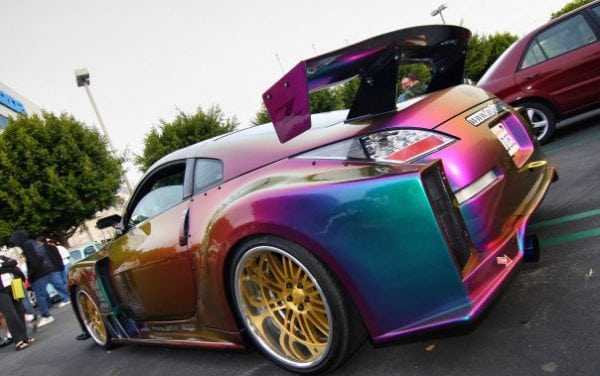 Красивый матовый эффект получается при некотором изменении состава краски, придающем отражающей способности некоторое рассеивание. к содержанию ↑Хром-хамелеон