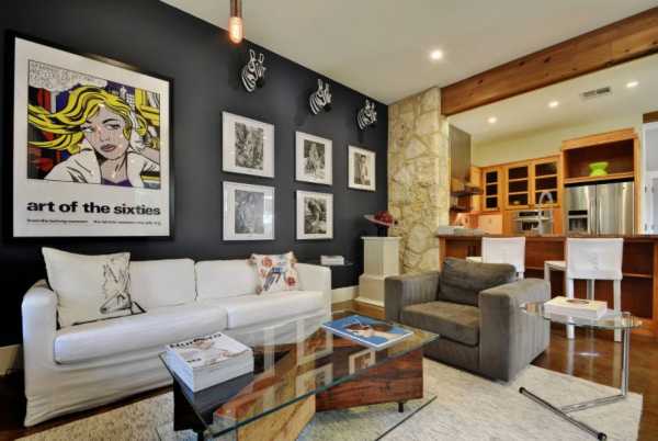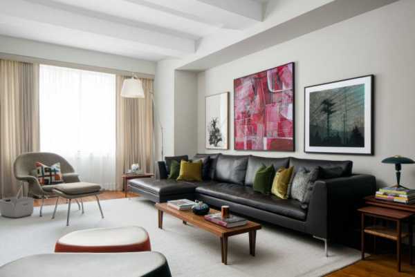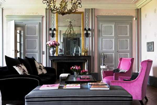 | Черный | Ар Деко, хай тек , модерн, лофт, минимализм | Фиолетовый, белый, золотой, красный, оранжевый | Большая гостиная | Визуально уменьшает пространство, ассоциируется с роскошью |
