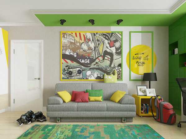 Проще всего разделить комнату на части по признаку активности. Те зоны, где предполагаются спокойные занятия окрашивают в голубой, зеленый или любой из пастельных оттенков. Место для чтения рекомендуется оформлять в желтом или белом цвете. При этом желтый должен быть неярким. Эти цвета позволяют сконцентрироваться на своем занятии и не отвлекаться на посторонние раздражители. Часть, где предполагается встречать гостей, можно окрасить сразу в несколько доминирующих цветов, которые будут действовать на гостей бодряще. Для этого подойдут: