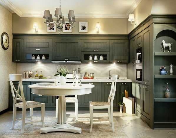 | Зеленый | Классика, кантри, современный | Бежевый, коричневый, белый, серый, желтый | Кухня гостиная, зал, детская, кухня, ванная | Добавляет свежести в интерьер |