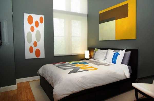 - Спальня – помещение, предназначенное для отдыха, поэтому в интерьер отлично впишутся спокойные оттенки зеленого и синего. Однако молодежь все более часто предпочитает красный цвет, которые способствует обольщению.