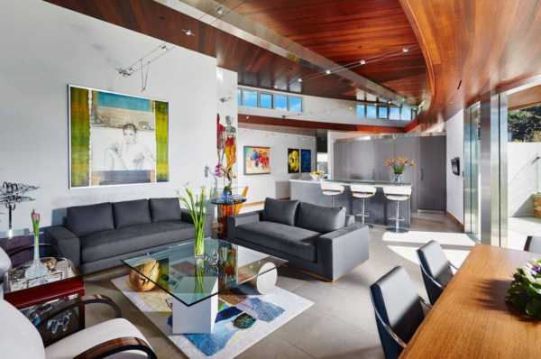 - Серый потолок в интерьере