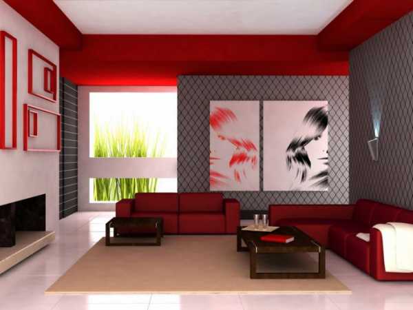 | Красный | Модерн, хай тек, минимализм, классика, арт деко | Белый, коричневый, фиолетовый, серый, оранжевый | Гостиная, кухня | Активизирует зрительный нерв |