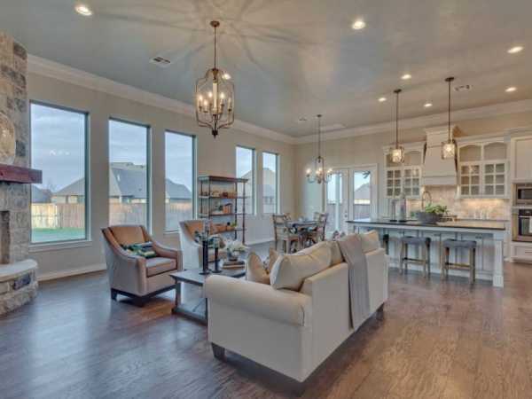 Основные цвета зоны проявляются не только на крупных поверхностях, но и в деталях, аксессуарах, текстиле, картинах и прочих украшениях интерьера. Кто-то предпочитает провести четкую цветовую границу по полу или даже использовать другое напольное покрытие и ковер. Но это совсем необязательно. Достаточно наполнить каждую из зон доминирующим цветом.