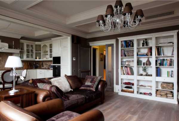 Столь же мягким выглядит интерьер в коричневых тонах. Кроме натуральности, такой цвет придает гостиной шик и роскошную атмосферу. Приятные шоколадные стены могут украсить комнату с хорошим освещением и достаточной площадью. Если желание использовать темные оттенки велико, то рекомендуется сначала выкрасить стены, а потом подбирать остальные объекты обстановки. На каждом этапе нужно анализировать свои ощущения от пребывания в гостиной. Если это место не кажется темным, то можно считать, что детали подобраны верно.