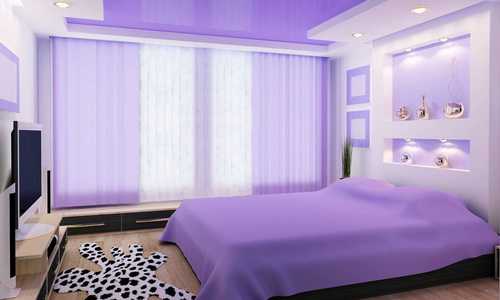 | Фиолетовый | Хай тек, классический, лофт | Белый, розовый, зеленый, желтый, черный, синий | Квартира студия, ванная комната, гостиная, кухня, детская, спальня | Ассоциируется с сиренью, весенние оттенки |