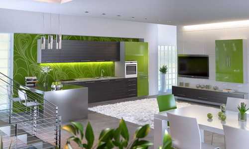 - В зеленый интерьер можно добавлять белый, желтый, лайм, салатовый, синий и черный цвета.