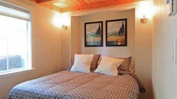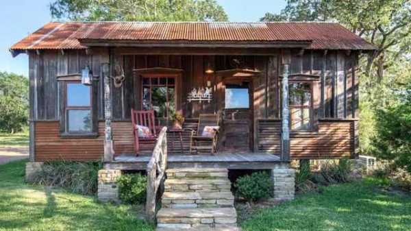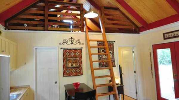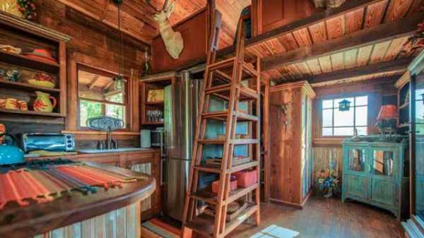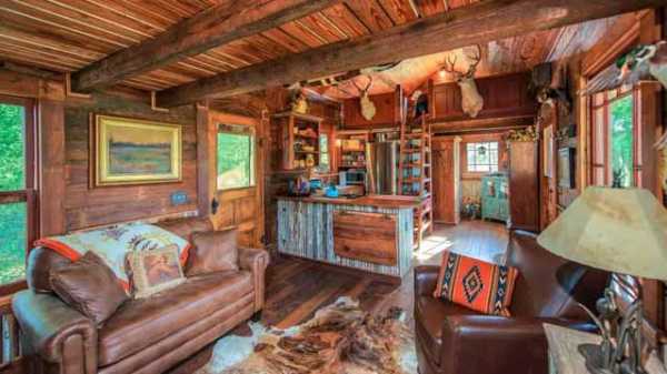Несмотря на скромные размеры, внутри нашлось место для всего, включая спальню, современную кухню, камин и — конечно же! — кресло-качалку.