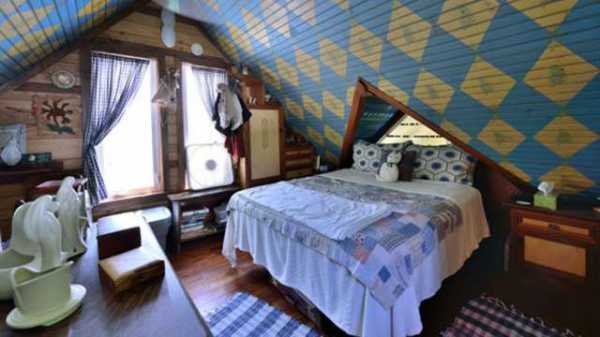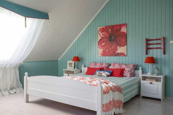 Спальня располагается, как правило, на втором этаже. Для ее отделки используют бумажные обои, штукатурку, а если это деревянная дача, то брус покрывают защитным лаком. Кровать может быть железной или деревянной с выдвижными ящиками, обязательно наличие комода или распашного шкафа.