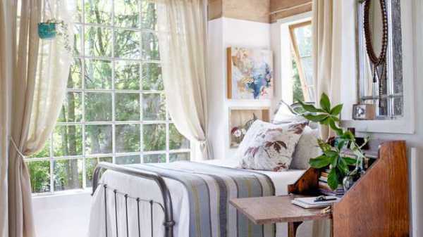 Особое очарование этому дому придают разные уютные мелочи: железная кровать, старая отреставрированная мебель, картины. Огромные окна пропускают внутрь море света, так что спать до двенадцати в такой спальне вряд ли получится!