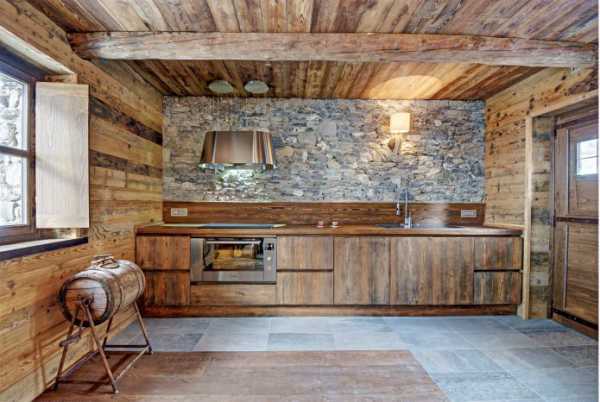 На фото дачный интерьер в стиле альпийского шале, который сочетает в себе грубое кантри и минималистическую направленность.
