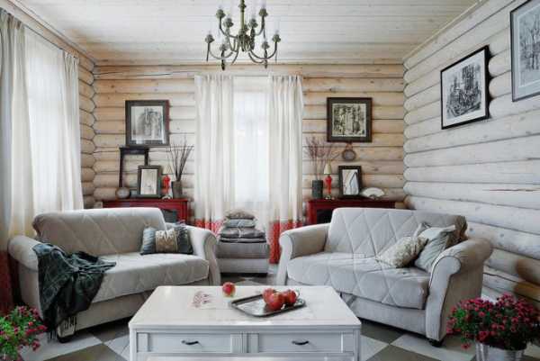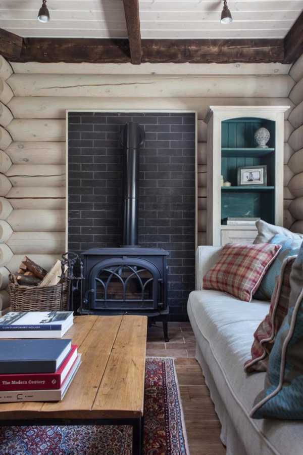 Кантри или деревенский стиль пользуется большой популярностью у дачников из-за своей специфики. Отличается простотой, деревянной отделкой, натуральными цветами, клетчатым или вышитым текстилем, цветами в горшках. Из мебели используются только необходимое: стол, диван, кровать, кресла или стулья. Для завершенного стиля подойдет функционирующая печка. Деревянный брус не прячется, а выглядит естественно, как на фото.
