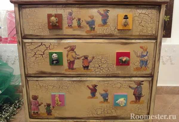 Перед декорированием необходимо снять все ручки с комода, и протереть его от пыли влажной тряпкой.