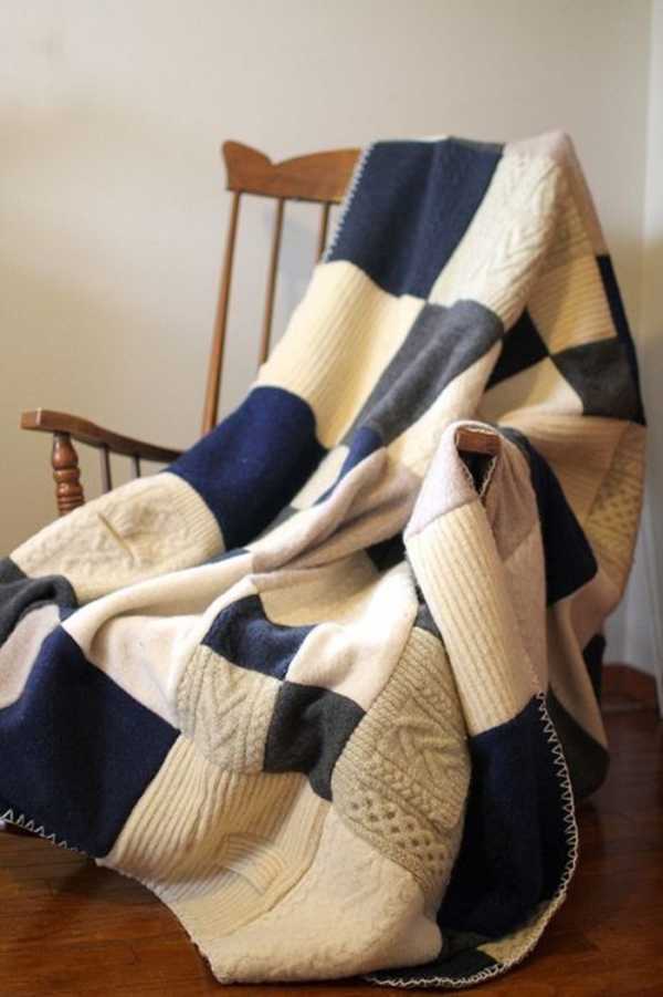 Если ненужной одежды накопилось много, то можно сшить плед в технике лоскутного шитья.
