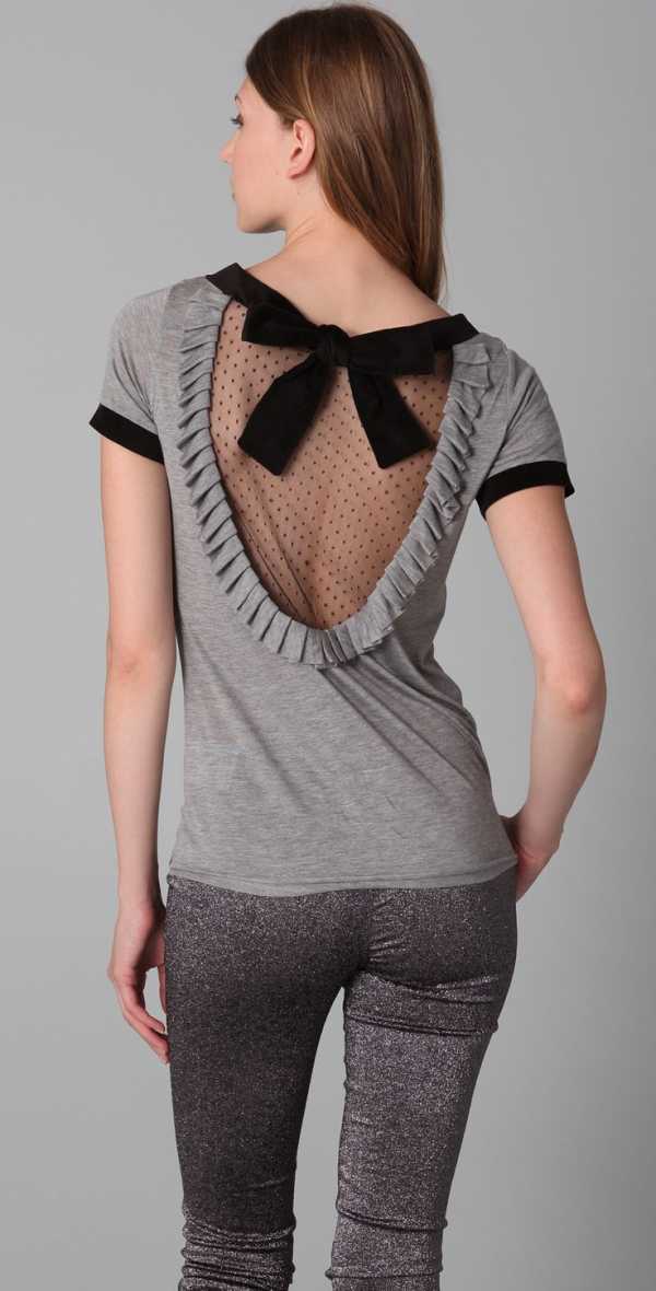 Кружевная вставка на футболке облагородит и украсит скучную вещь