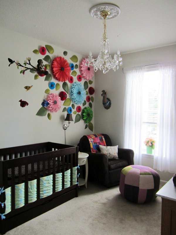 Не цветами едиными — из бумаги можно также делать и другие, не менее интересные аппликации для декора с отсылками к животному и растительному миру. Так, один из самых любимых сюжетов у детей — бабочки на стене. Оформленные в детской комнате, они точно смогут порадовать вашего ребенка позитивными эмоциями.
