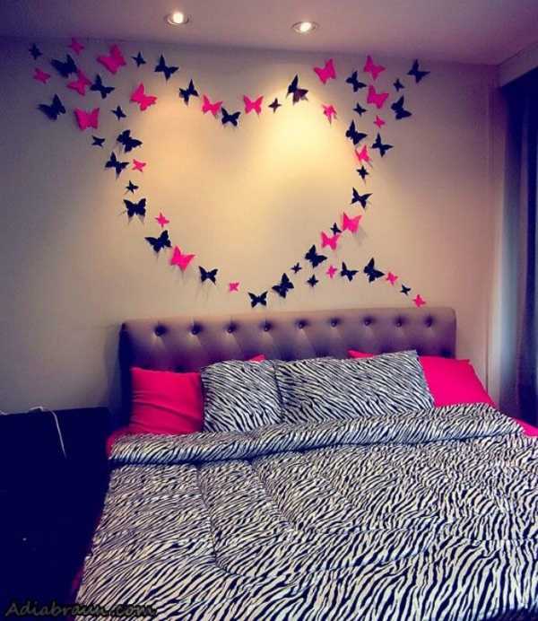 Чтобы получить максимальный эффект, нужно подобрать оптимальное расположение бабочек на стене. Это можно сделать многими способами: в виде вихря, сердечка, цветочка, дерева, у изголовья кровати, или в случайном порядке в подходящих местах. Чтобы с точностью повторить нужный контур, вначале сделайте едва заметную разметку на стене карандашом, которую потом сможете стереть.