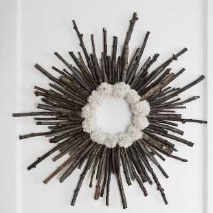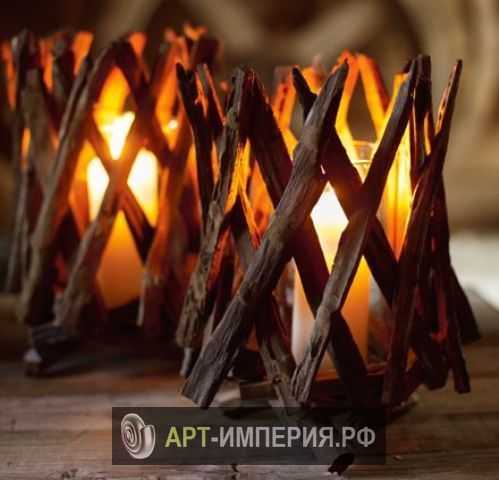 В декоре активно используются ветки и коряги. Можно сделать люстру из старой лестницы, украсив ее ветками. Мимо такого арт-объекта ни один гость не пройдет без восхищения. Из лестниц вообще можно сделать многое: читайте об этом здесь.