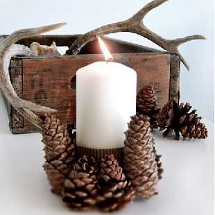 — используйте деревянные срубы, ситец, мешковину, лен, свечи, мох, сено, шишки. Ими можно украсить зал;