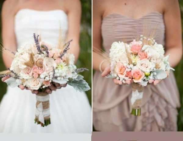Букет в деревенском стиле всегда на стеблях. Он не должен быть правильной круглой формы и редко составлен из одного вида цветов. Букет невесты должен состоять из самых простых цветов, желательно полевых. Изюминкой в букете может быть декорирование его шишками и мхом.