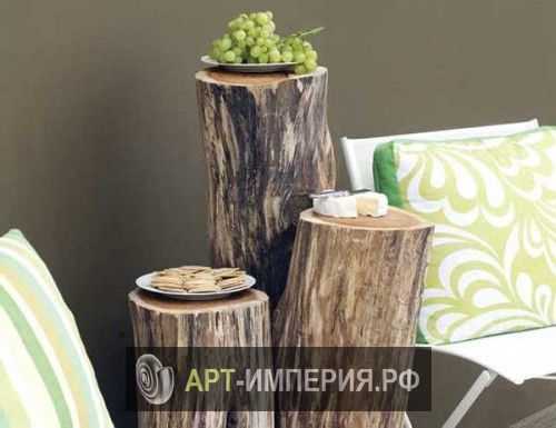 Используйте вместо стульев небольшие пеньки. Однако следует проследить, чтобы их поверхность была чистой и гости не испачкались.