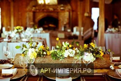 На открытой местности церемонию можно провести только в теплые месяцы. Если свадьба в стиле рустик проходит в холодное время года, можно выбрать загородный дом или ресторан. Для самой церемонии можно использовать террасу, а для торжества – большой зал, где присутствует простой, деревенский стиль без лишних роскошных элементов. Лучше всего выбирать те помещения, где оформление выполнено из камня, кирпича, деревянного бруса или спила.