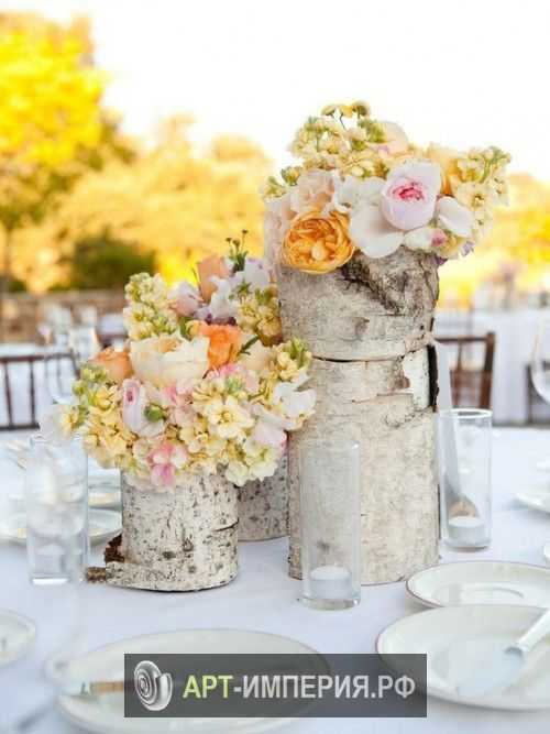 Хорошо, если вы сможете использовать эко детали на свадьбе. Это могут быть все деревянные изделия. На них не стоит прятать такие дефекты как трещины, шероховатости, царапины.