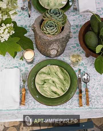 Основной ориентир — полевые цветы - в качестве основных оттенков желательно выбрать бежевый, цвет слоновой кости, небесно-голубой, желтый, пастельно-зеленый, коричневый и, конечно же, белый.
