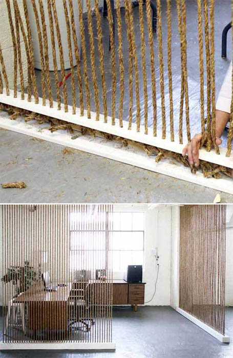 В данной статье мы рассмотрим примеры перегородок, которые можно сделать своими руками. Возможно, на фотографиях Вы найдете что-то подходящее именно для вашей комнаты.