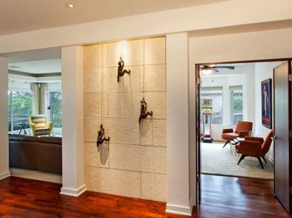 Другой вариант освещения подойдет для обычных панно или изображений, которые являются частью интерьера и не требуют особого внимания. В таких случаях, достаточно встроенных или накладных светильников для потолков. Некоторые современные дизайнеры предлагают устанавливать цветные споты в поверхность пола.