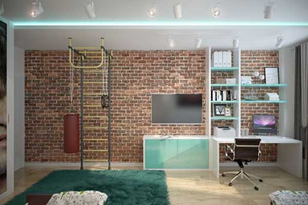 Имитация кирпичной кладки, выкрашенной в белый цвет, в современной типовой квартире