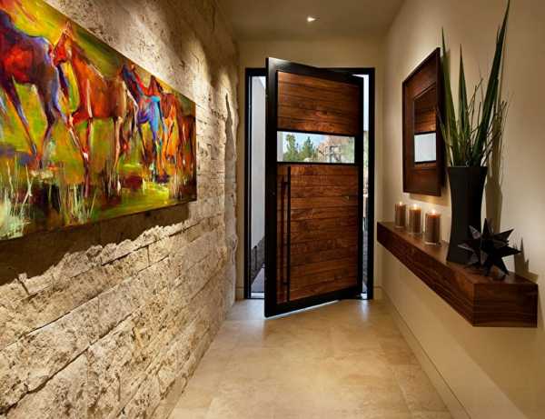 Камень в интерьере прихожейЗа счет своей износоустойчивости, практичности, простому уходу и презентабельному облику, декоративный камень особенно часто встречается в коридоре или прихожей.