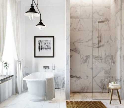 Это помещение требует качественного отделочного материала. Если использовать искусственно сделанные мрамор или гранит, обладающие водоотталкивающими свойствами, то ванную можно превратить в спа-салон.