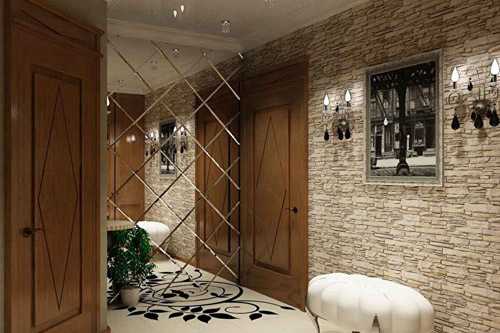 А, кроме того, оптимальный вариант — это частичная отделка. Камень может быть использован для декорирования зеркал, арки, стены за вешалкой. Помните, что помещение станет изысканным, если избежать перенасыщенности.