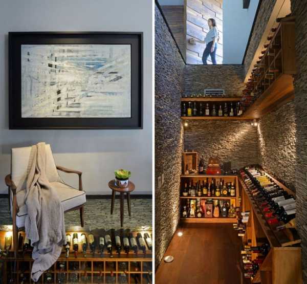 Облицованные мелко нарезанным камнем стены винного погреба современного загородного дома. Такой способ нарезки камня на сленге профессионалов называется «лапша»