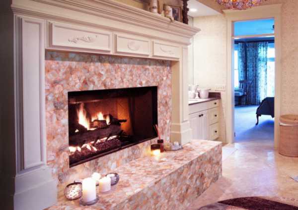Каменная кладка или кварцевый агломерат, самым наилучшим образом подойдет для декора камина. С их помощью можно частично, полностью украсить стену с очагом или выложить только портал.