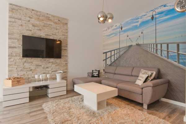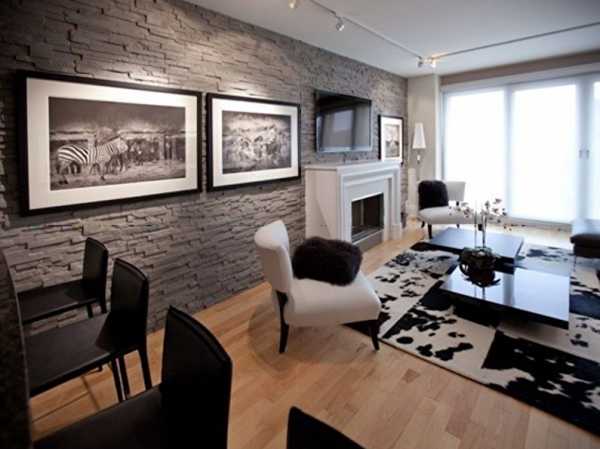 Из-за того, что большинство квартир не может похвастаться просторными комнатами и высокими потолками, декоративный камень лучше использовать при оформлении коттеджей и частных домов. Если же вы все-таки желаете привнести в облик своей квартиры (пускай даже малогабаритной) нотку монументальности и вместе с тем уюта, при грамотном подходе каменная кладка может быть использована и здесь. Вот несколько примеров ее использования в типичной городской квартире: