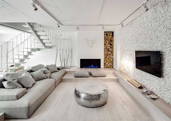 В этой уютной двухуровневой квартире одна из стен оклеена белой галькой. Это проделывалось буквально поштучно и заняло три недели. Идея: архитектурное бюро FORM, Киев