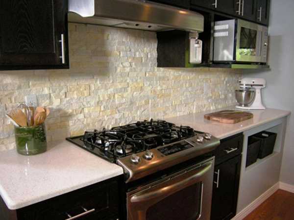 - Натуральный камень можно использовать на кухне, заменив им привычный фартук из плитки.