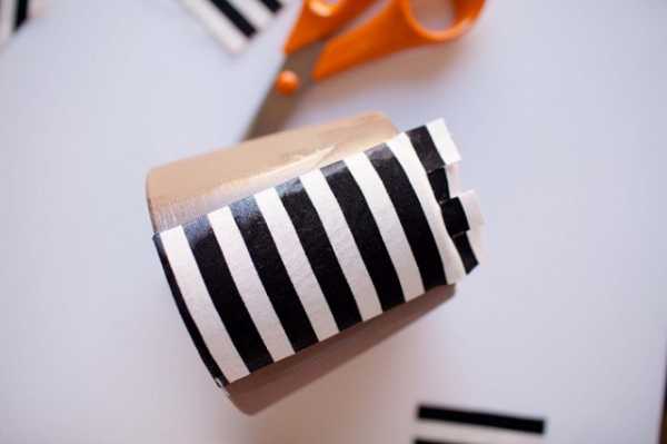 С помощью полосатой чёрно-белой ткани сделаем декор нашего кашпо нетривиальным.