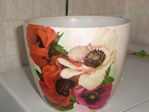 Эта техника позволяет создать на горшке красочные картинки на основе обычных салфеток: